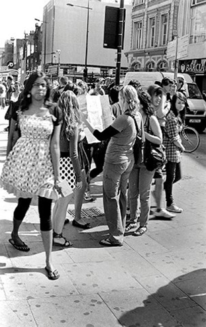 “The photographer is an armed version of the solitary walker reconnoitering, stalking, cruising the urban inferno, the voyeuristic stroller who discovers the city as a landscape of voluptuous extremes. Adept of the joys of watching, connoisseur of empathy, the flâneur finds the world ‘picturesque'" - Sontag: On Photography